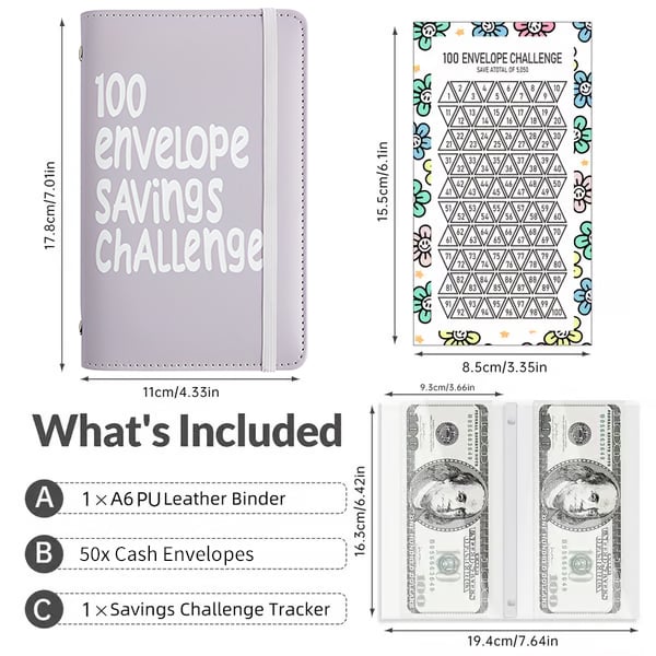 📏Comes with an A6 size binder (7 inches tall X 4.3 inches wide), 1 laminated reusable tracker, the traditional way to save $5,050